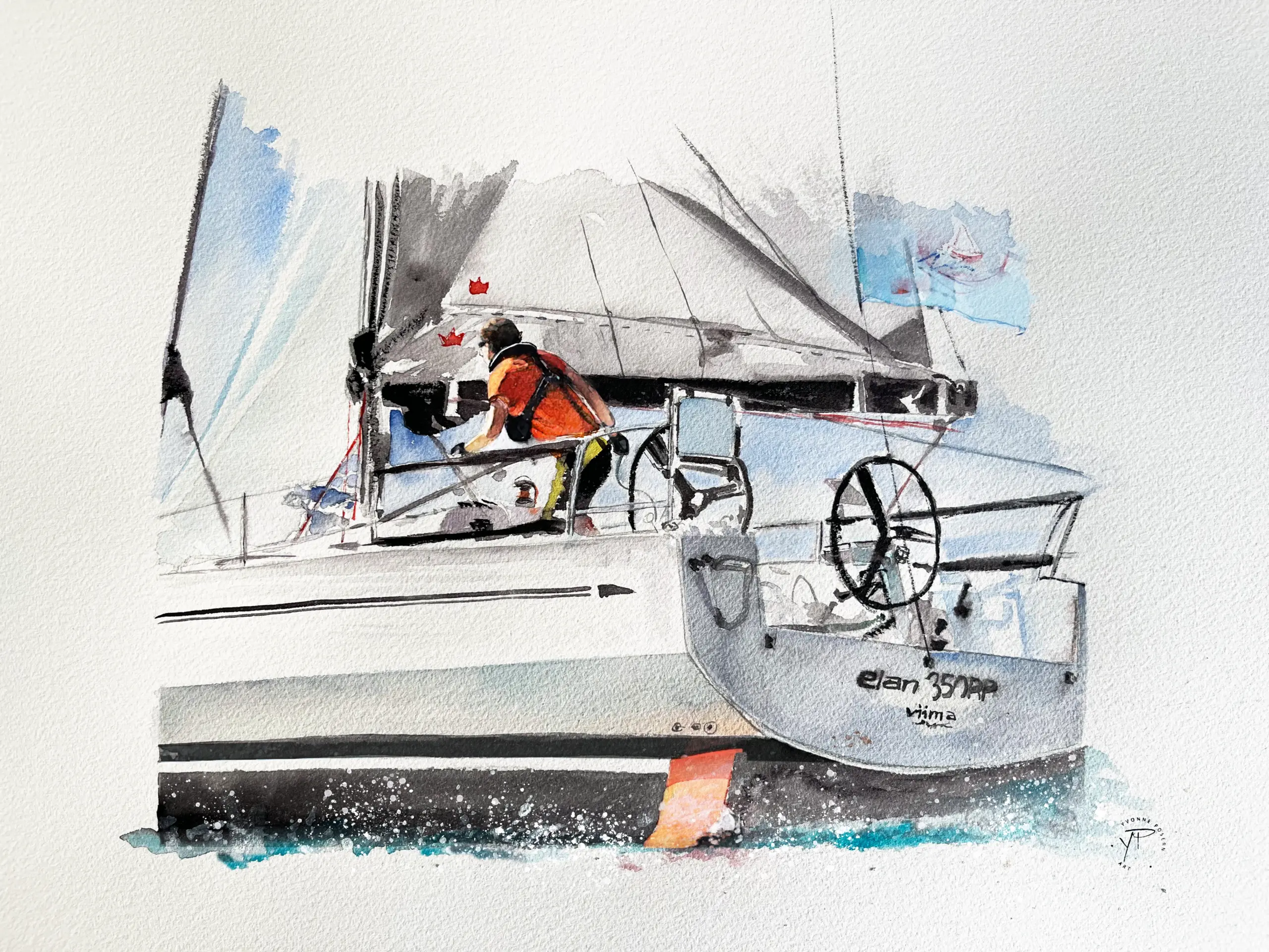 Ich male maritime Momente. Vom stillen Heimathafen bis zum Adrenalin einer Regatta. Aus wenigen Fotos entsteht ein handgemaltes Aquarell, das Energie spürbar macht.